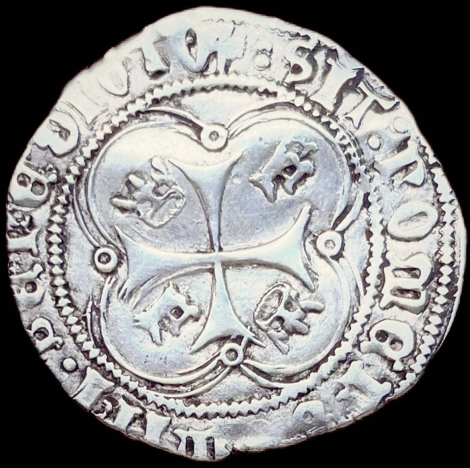 1 Real Fernando el Católico ceca Pamplona año 1476-1516 estado MBC/MBC- 6 flores de lis en la corona, pieza rara