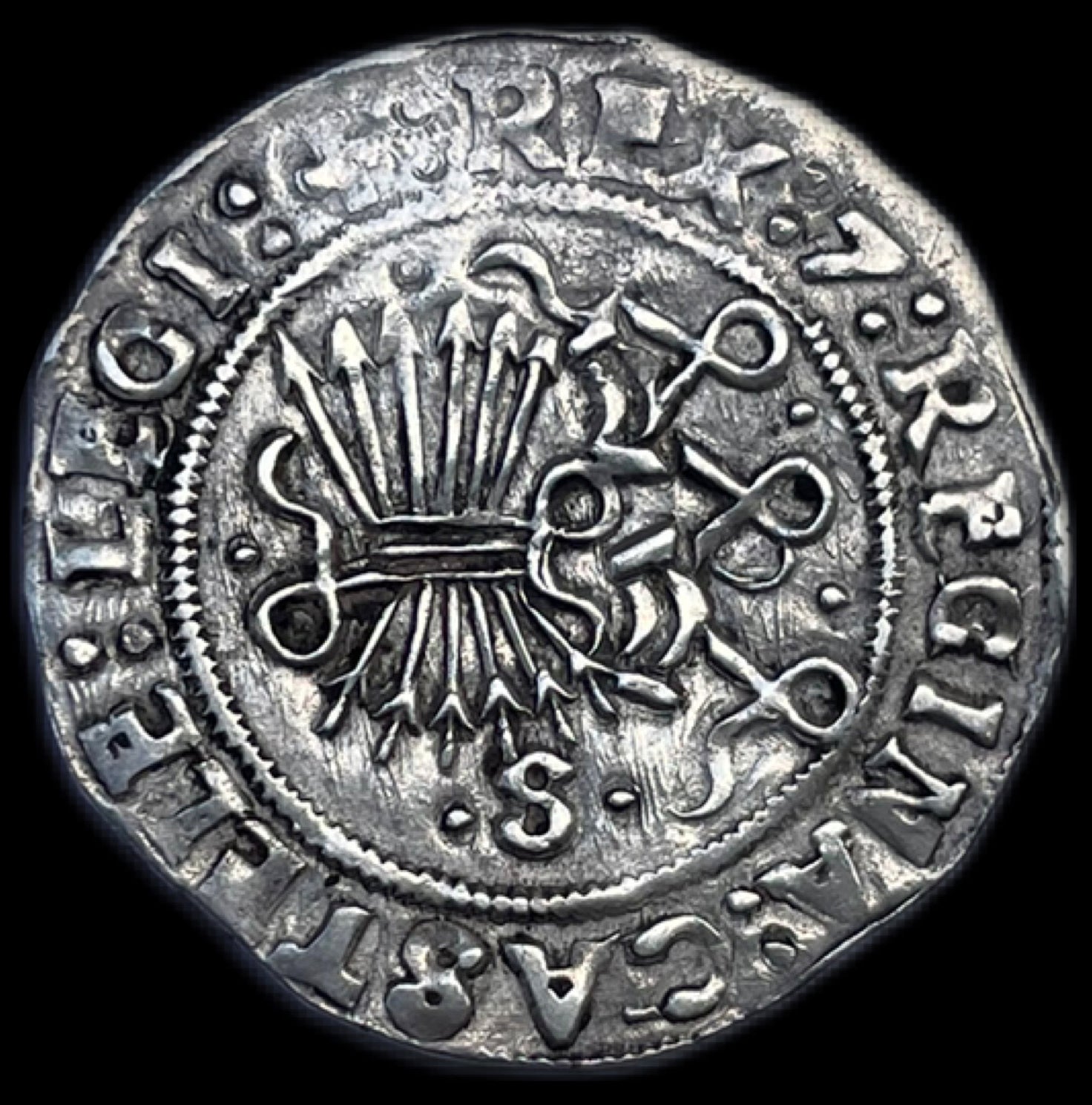 1 Real Reyes Católicos ceca Sevilla año 1474-1504, dos puntos y X a ambos lados de escudo estado MBC+EBC-