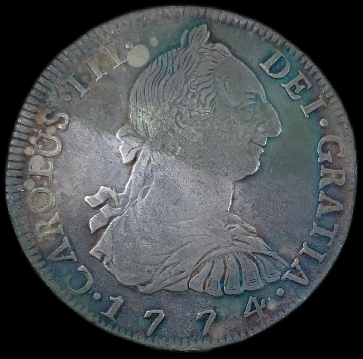 8 Reales Carlos III ceca Potosí año 1774 ensayador J.R peso 26,58 g estado EBC-