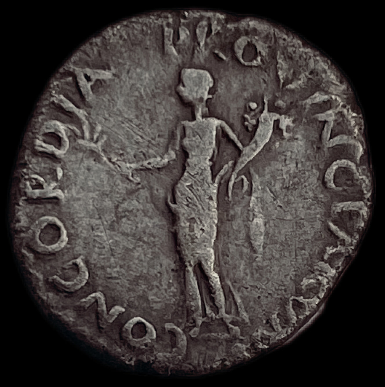 Reverso: Concordia, drapeada, de pie a la izquierda, sosteniendo una rama en la mano derecha y una cornucopia en la izquierda. Leyenda CONCORDIA PROVINCIARVM