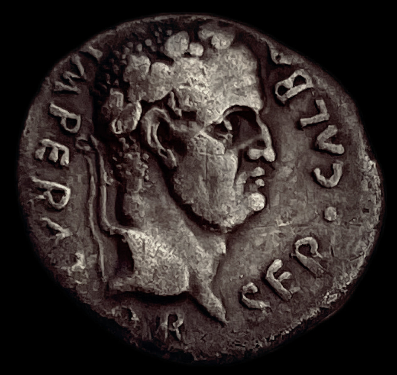 Anverso: Cabeza de Galba, laureada, a la derecha. Leyenda SER GALBA IMP CAESAR AVG PM TR P
