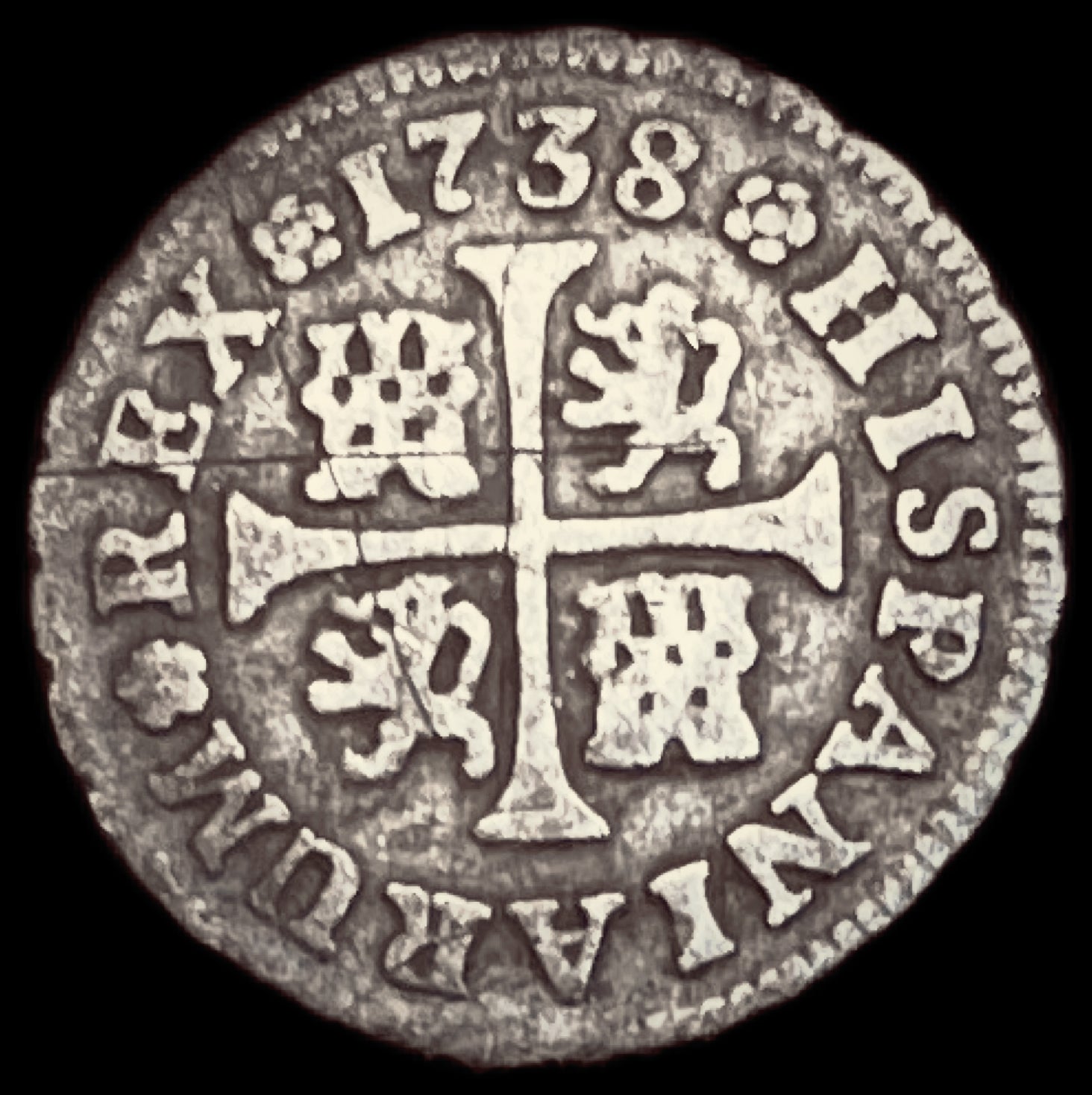 Medio Real Felipe V ceca Madrid año 1738 ensayador JF peso 1,43 g estado MBC